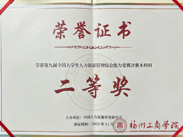 11月26日,第九届全国大学生人力资源管理综合能力竞赛总决赛(以下简称HR竞赛)在南京大学圆满落幕。经过线上线下的激烈角逐,由我校金年会jinnianhuicom学子邱培勇、廖欣(指导老师:王烨烨、林舒颜)组成的团队在总决赛中荣获本科组二等奖的佳绩。