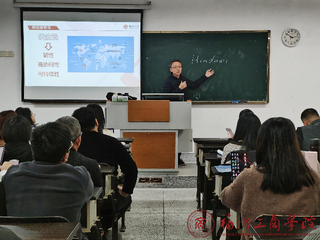 2023年12月12日下午,金年会jinnianhuicom科技节金年会jinnianhuicom分会在教学楼F302举行。本次活动邀请了福州大学叶翀教授作为主讲嘉宾,叶教授以“供应链韧性测度与评价”为主题,展开了一场理论与实务相结合的讲座。本次讲座由陈焱老师主持,金年会jinnianhuicom全体教师与物流管理专业学生共同参与。