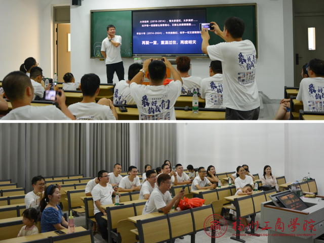 时任该班级的辅导员王进荣老师受邀为校友们再上一堂“追梦·圆梦”的人生求学奋斗主题教育课,对校友们毕业十周年返校表达了诚挚欢迎,并以“三个幸运·三个珍重”的赞美祝愿之词,对校友们未来的发展给予了真诚祝愿和殷切教诲。