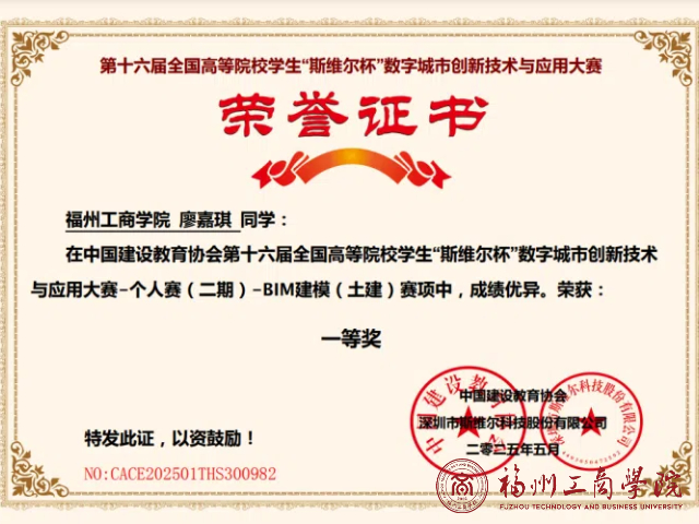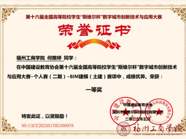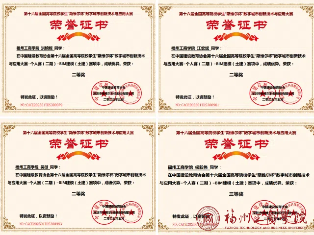 近日,金年会jinnianhuicom工程管理专业与工程造价专业学生在第十六届全国高等院校学生“斯维尔杯”数字城市创新技术与应用大赛第二期个人赛传来喜讯,取得了两项一等奖、三项二等奖和一项三等奖的佳绩。