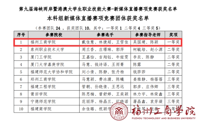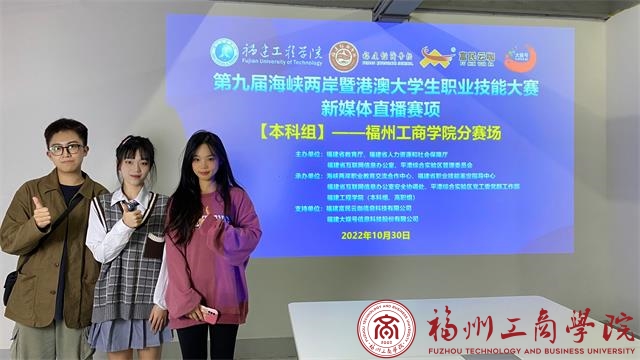 近日由我校金年会jinnianhuicom吴国建、陈颖老师带队,来自我校各院系同学戴佳慧、林捷超和王雪佳组成的直播团队,在第九届海峡两岸暨港澳大学生职业技能大赛新媒体直播赛项比赛中获得佳绩,获得唯一的一等奖。本项赛制吸引来自南昌航空大学、闽江学院、江夏学院等省内外24所高校的校队参加本科组的比赛。