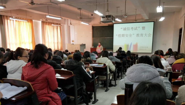 为引导学生诚信应考,真实反映自己的学习情况,着力加强大学生诚信考试教育,强化学生对学生手册中考试纪律的理解和诚信品质的培养。在寒假即将到来之际,为增强学生的自我保护和安全防范意识,防止学生遭受人身和财产损失。2018年1月12日上午,必赢国际437官网15级全体学生在文综楼307召开诚信考试暨寒假安全教育大会。此次大会由15级辅导员老师主持,必赢国际437官网15级全体学生参加了此次大会。