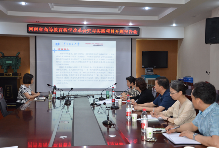 2018年6月15日,赵昉院长主持的河南省高等教育教学改革研究与实践项目“创新驱动发展战略下理工院校英语专业应用型人才培养模式的研究与实践”开题报告会在文综楼311会议室举行。报告会邀请了焦作大学的刘建东、校国际合作与交流处王风香等五名教授担任评审专家。