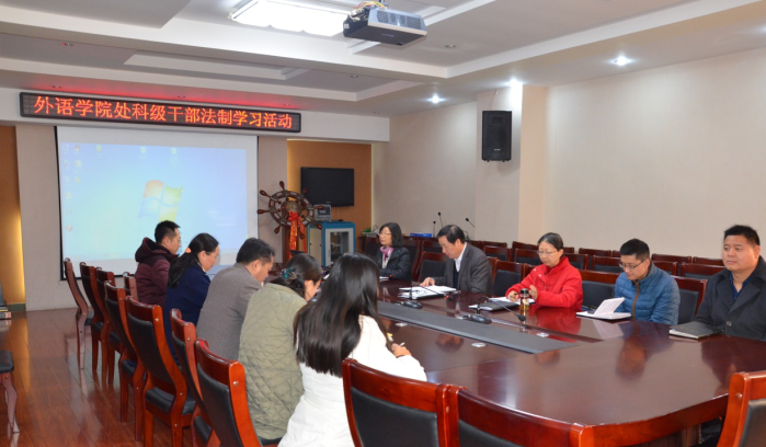 此次会议,明确了学院处科级干部的责任和任务,为着力开展法制宣传教育,弘扬法治精神,推进依法治教、依法治校打下了坚实的基础。
