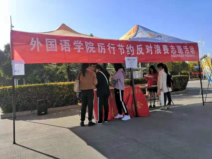 10月31日,正值世界勤俭日,必赢国际437官网必赢国际437官网青年志愿者协会在校学苑餐厅东门外举办了“厉行节约,反对浪费”志愿活动。